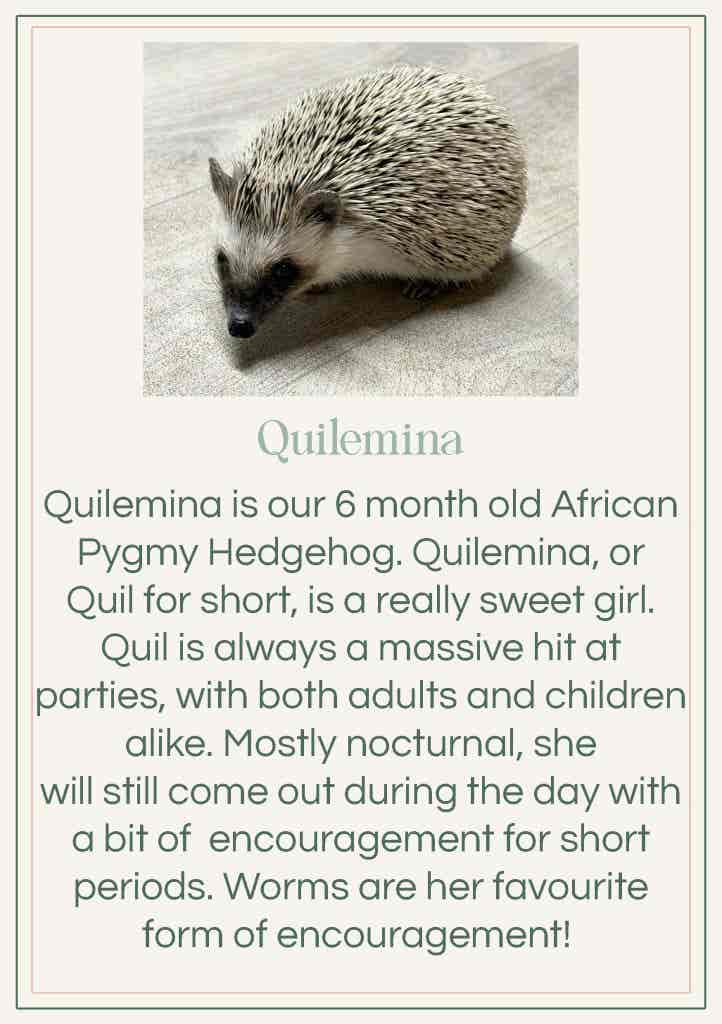 Animals have always been a huge part of my life, and I’ve seen first-hand the happiness, confidence, and calm they bring to people of all ages. That’s what inspired me to create Foxglove Meadows. From hands-on learning in primary schools that complement the national curriculum, to nurturing animal therapy sessions for SEND children, and even adding a touch of magic to birthday parties, corporate events, and weddings, my mission is to share the calming and joyful presence of animals with every audience.